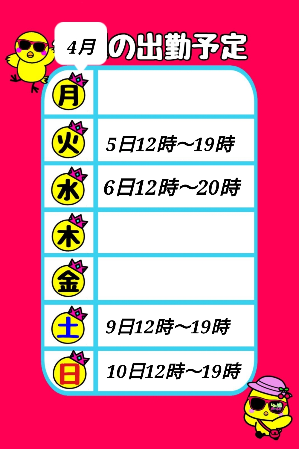4月のシフト♪