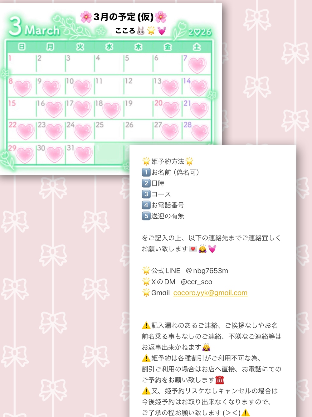 ⬆️画像2枚目に3月の予定(仮)と姫予約方法を添付しています✨