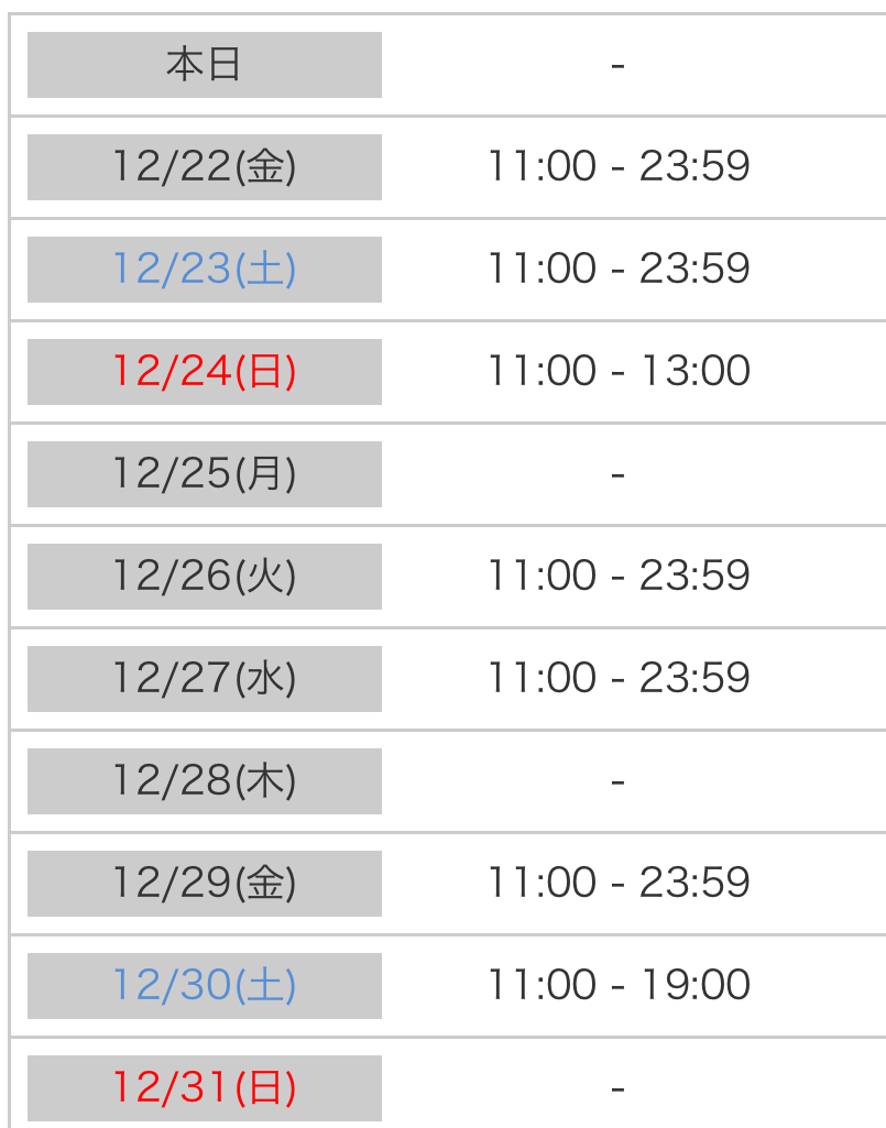 (年内の出勤は29、30日と