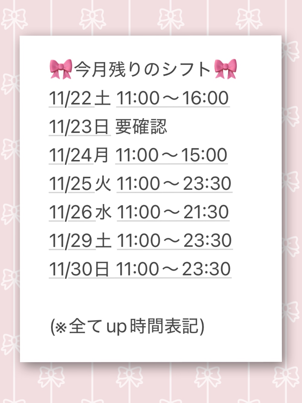 🎀今月残りの出勤日🎀